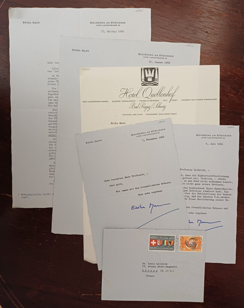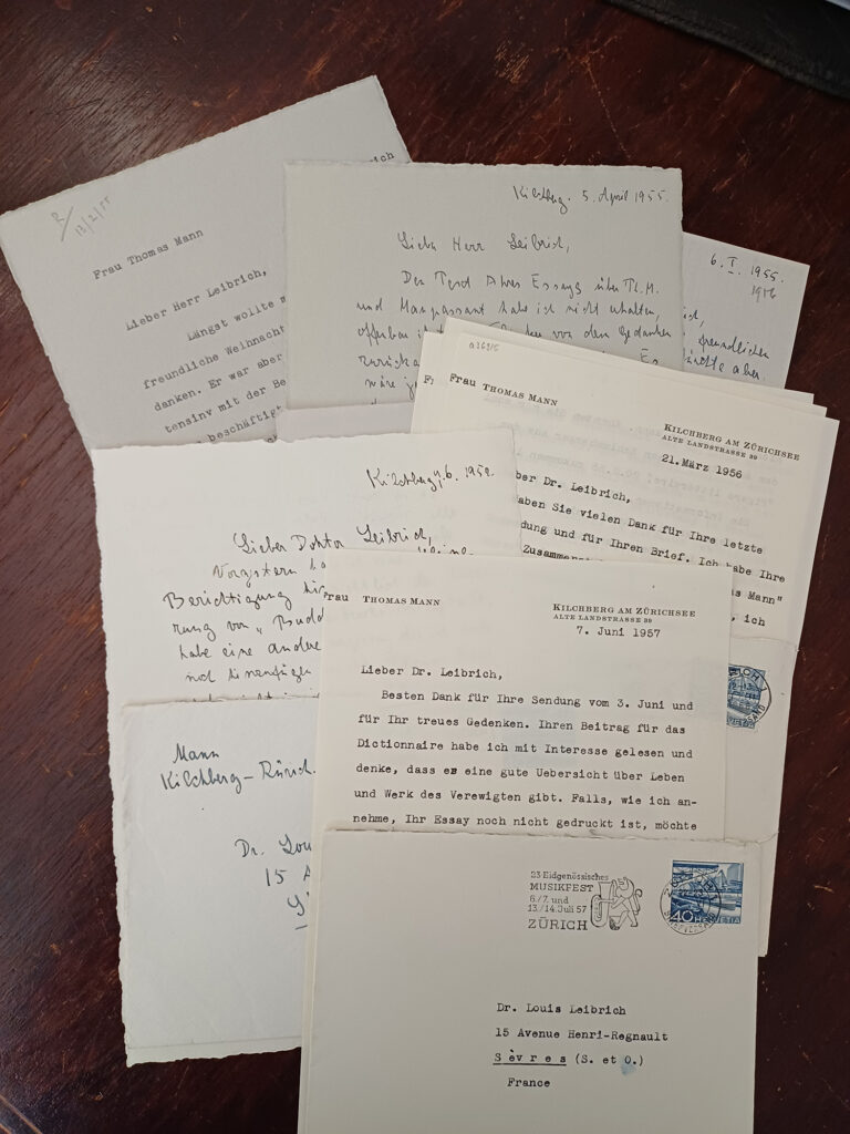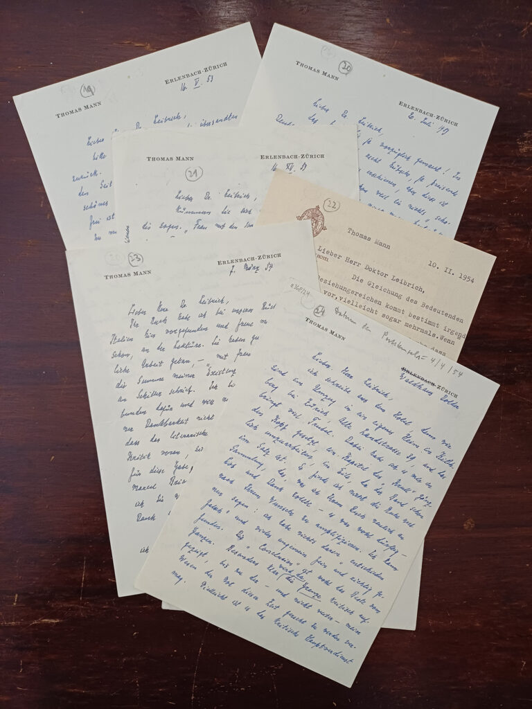 Im Rahmen seiner Forschungen nahm Leibrich bereits in den 1930er Jahren Kontakt zu Thomas Mann auf. Daraus entwickelte sich ein langjähriger Briefwechsel – zunächst mit dem Schriftsteller selbst, nach dessen Tod auch mit Mitgliedern der Familie Mann. In den frühen Schreiben standen vor allem Fragen zum Werk Thomas Manns im Mittelpunkt: Leibrich erkundigte sich etwa nach Einflüssen Friedrich Nietzsches, nach der Herkunft einzelner Zitate oder nach biografischen Details. Mit der Zeit wurde der Austausch persönlicher. Thomas Mann berichtete unter anderem über sein Verhältnis zu seinem Bruder Heinrich Mann, über seine Arbeit an „Felix Krull“ oder über persönliche Pläne und Lebensumstände. Nach dem Tod von Louis Leibrich verblieben die Briefe im Familienbesitz, aus dem sie nun vom Buddenbrookhaus erworben werden konnten.