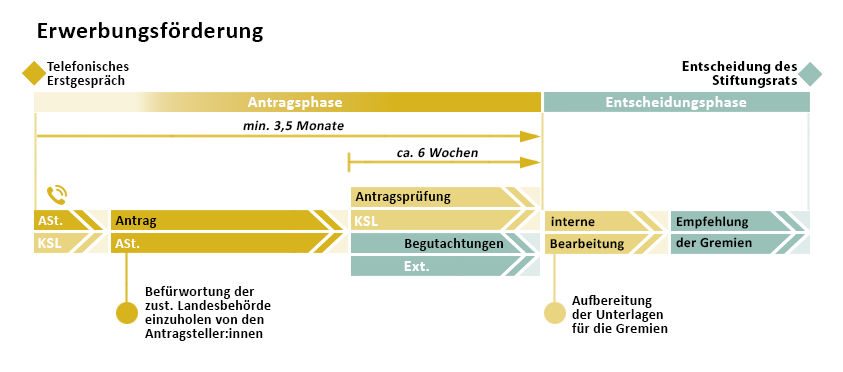 Vor der Antragstellung ist ein verpflichtendes Beratungsgespräch mit der Kulturstiftung der Länder zu führen. Dabei wird auch erörtert, ob Ihr Erwerbungswunsch den durch die SATZUNG der Kulturstiftung der Länder vorgegebenen Kriterien sowie den FÖRDERRICHTLINIEN entspricht.