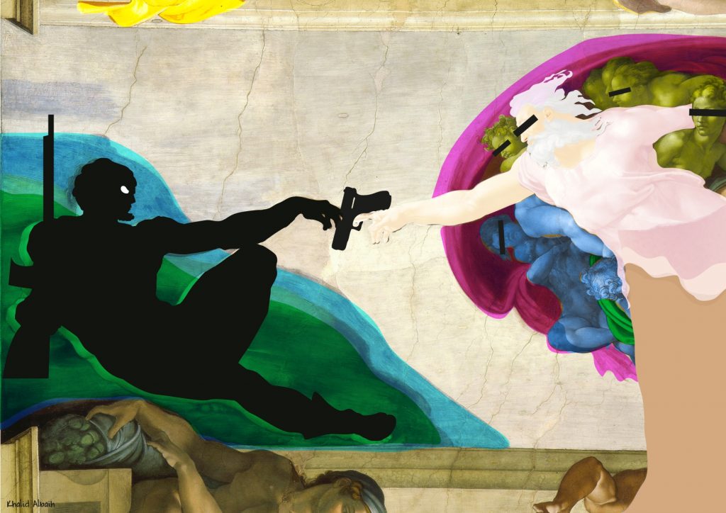 Terrorakte aus der jüngeren Vergangenheit unter anderem in Deutschland, Norwegen, den USA oder Neuseeland zeigen, wie wichtig die Kritik der visuellen Kultur an politischer Gewalt ist. Drei Kunstwerke aus dem Bestand der Kunsthalle Mannheim prägen die Ausstellung: „Die Erschießung Kaiser Maximilians“ (1868-1869), mit der Édouard Manet erstmals eine anti-kolonialistische Thematik und die Entstehung des Guerilla-Kampfes sowie dessen Wahrnehmung in der europäischen Presse in den Blick nahm. Zudem Johan Grimonprez‘ Videoinstallation Dial H.I.S.T.O.R.Y. (1997), in der er die Mediengeschichte von Flugzeugentführungen und des internationalen Terrorismus thematisiert. Nicht zuletzt nimmt das Gemälde Deutscher Wald (1981) von Walther Dahn und Jiří Dokoupil die Wiederkehr nationalsozialistischer Ideologie im Nachkriegsdeutschland in den Fokus.