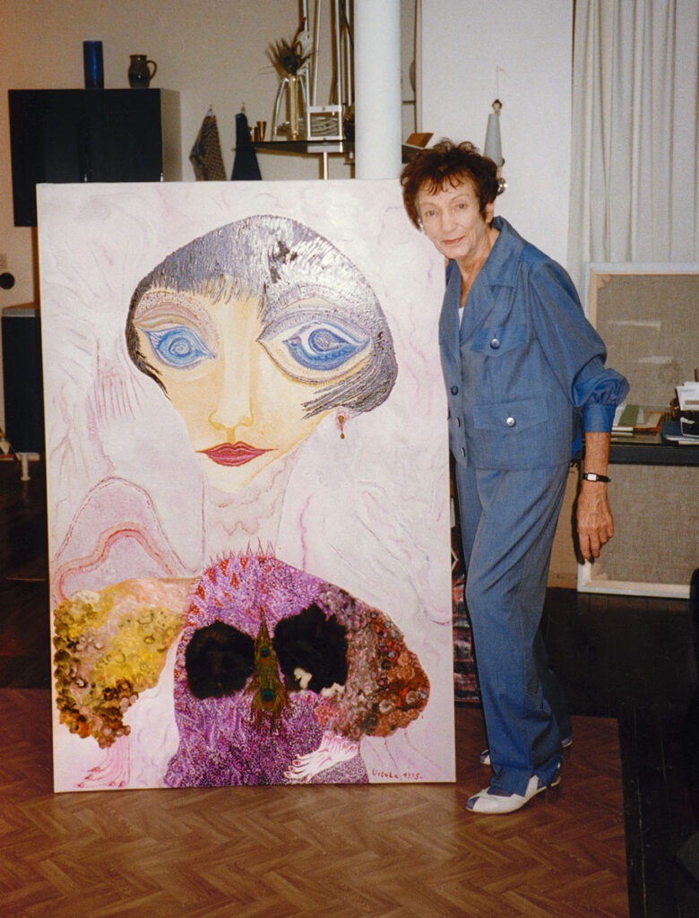 Geboren 1921 in der Mark Brandenburg, in Mittenwalde, lebte Ursula Bluhm als junge Frau in Berlin-Lichtenrade; diesen Erinnerungen verdankt sich ihre Fabelfigur des „Lirad“. In der NS-Zeit wurde Ursula zu Bürotätigkeiten dienstverpflichtet. Über die Schrecken der Kriegszeit hat sie nur in Andeutungen gesprochen, aber ausgedrückt hat sie diese Erfahrungen gleichwohl: Hinter den farbenfrohen Motiven ihrer Bilder lauert mitunter Gewaltsames. Nach Kriegsende war sie eine Weile für die Kulturabteilung des Amerika-Hauses tätig. Um 1950 herum begann Ursula, die keine formale Kunstausbildung besaß, selbst zu zeichnen und zu malen.